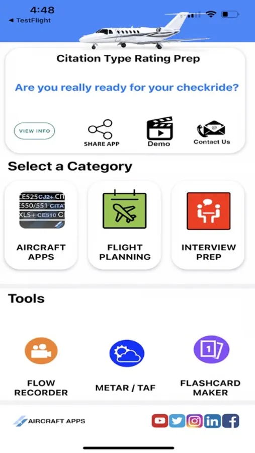 STEP 2: After AIRCRAFT APPS has downloaded to your device, tap Type Rating Prep on the Menu Screen and search through the in-app purchases for your aircraft.
