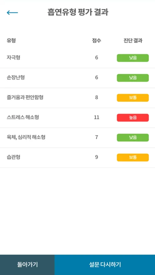 ⑤ 프로필: 나의 건강 및 사업장 정보, 흡연유형/니코틴의존도 평가 설문