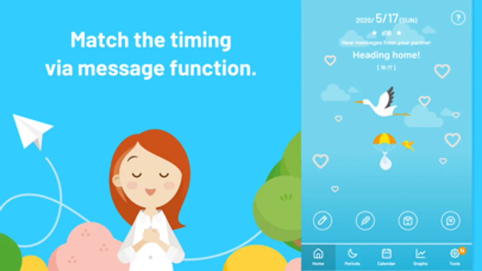 By connecting the couple's apps, the both can share pregnancy prediction, the woman's physical condition record and each other's schedule.