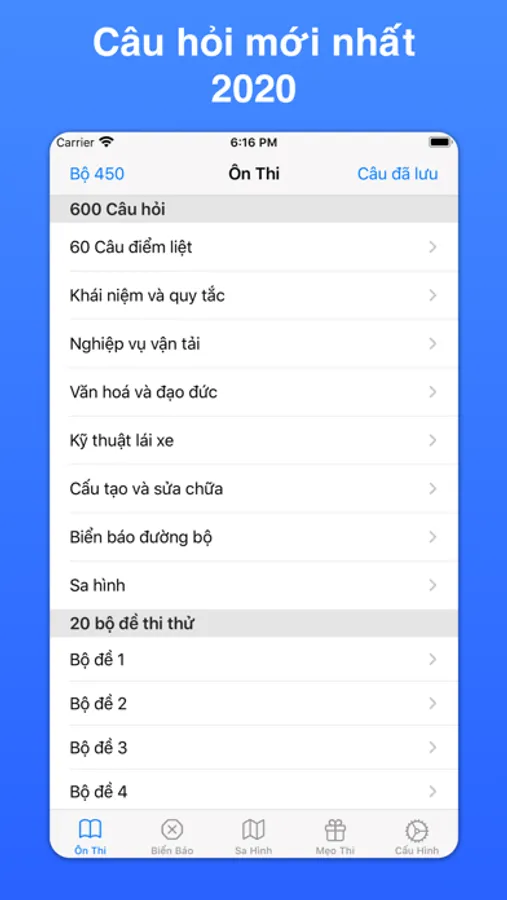 - Hệ thống gồm 600 câu hỏi ôn luyện mới nhất 2020 từ bộ GTVT
