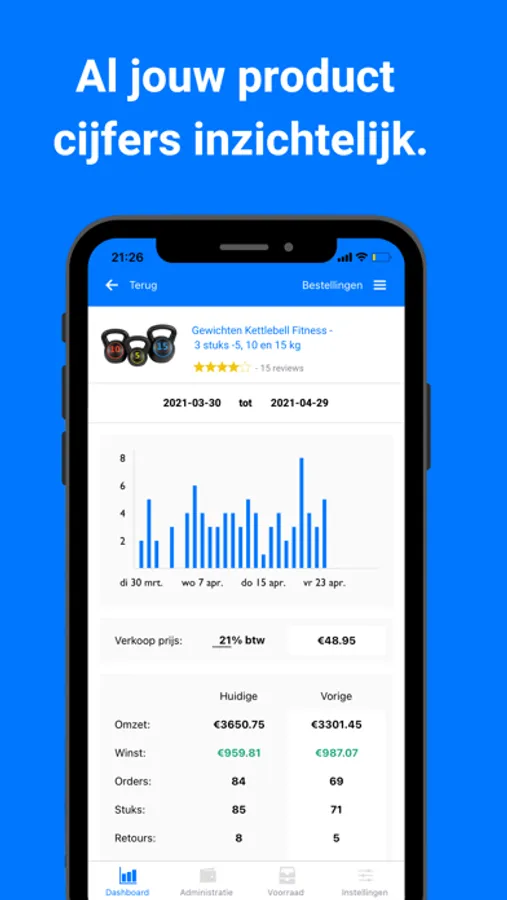 Run your business wherever you are. Whether you have one or multiple sales accounts, this app makes it easy for you to manage orders and products. Always have an up-to-date view of finances. View results at the product level so you can give timely direction to the assortment.