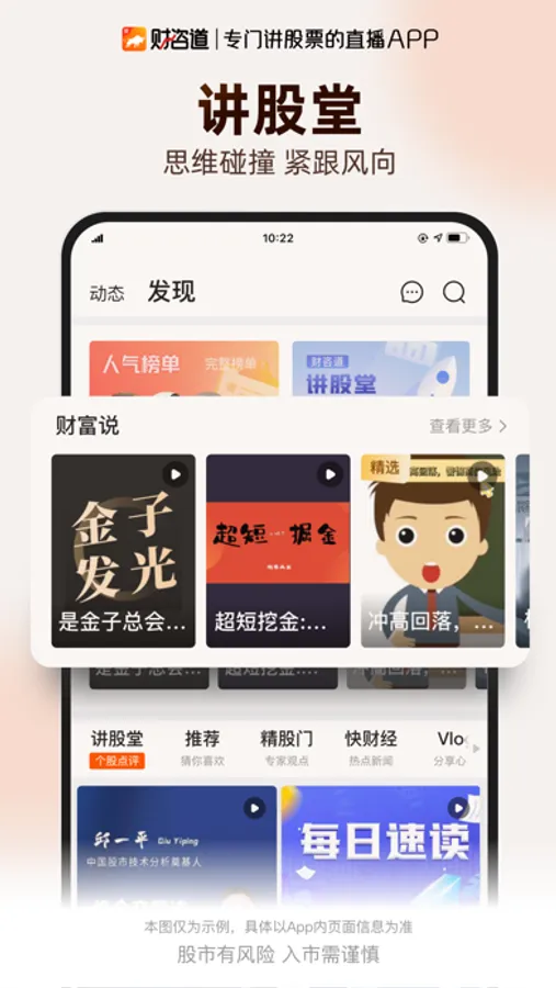 讲股堂(财经短视频):大盘速评、热门赛道、重大新闻以视频的方式尽收眼底。
