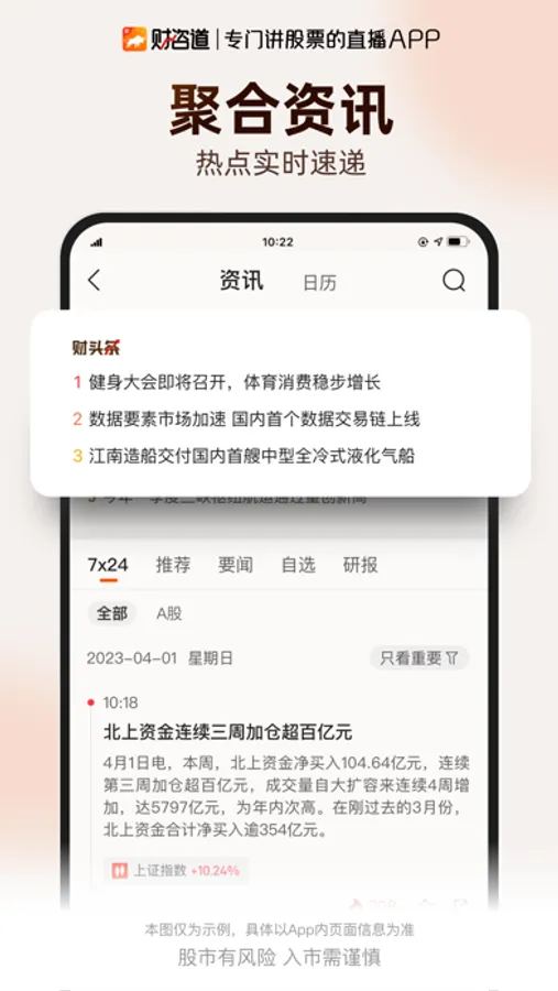 聚合资讯:实时行业快讯、市场热点信息、早晚盘评述、财经头条筛选等个性化推荐资讯助您在理财的路上化繁为简,取得市场先机。