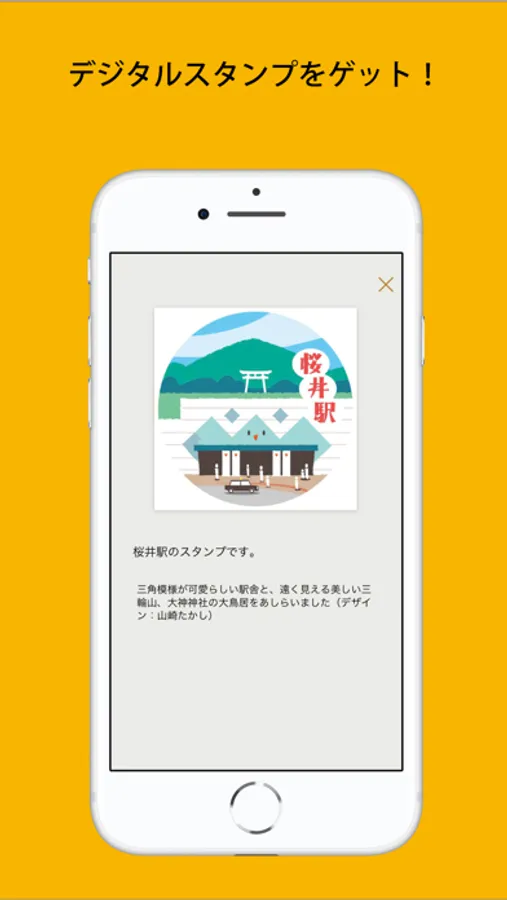 スマートフォンのGPS機能を利用して、所定の場所でチェックインすると、デジタルスタンプが発行され収集することができます。