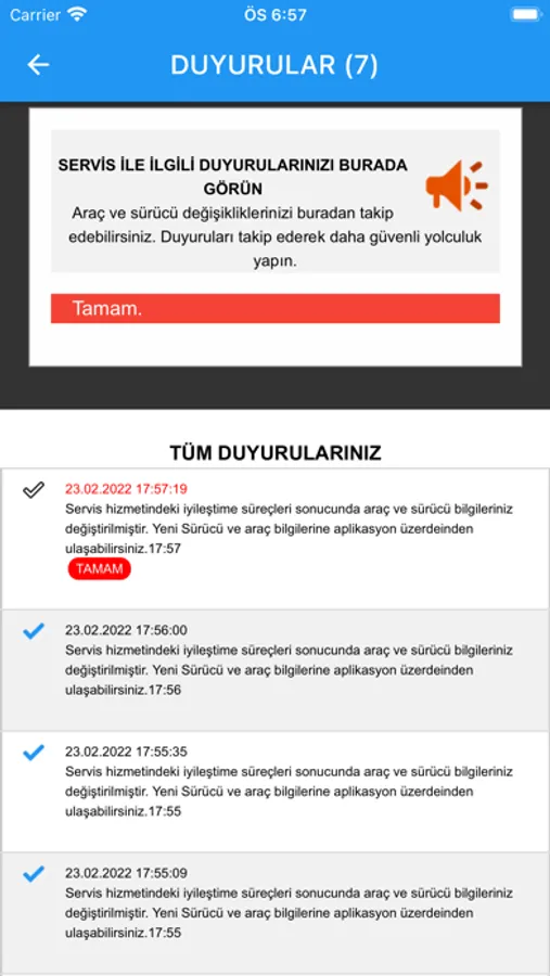 Transay Yolcu uygulaması ile servisinizin nerede olduğunuzu harita üzerinde görebileceksiniz. Servisi kullanacağınız günleri belirleyerek Servis Planlama yapabilirsiniz. Günlük beyan yaparak servis kullandığınızı işaretleyebilirsiniz. Gelişmiş DUYURU sistemi ile hep güncel kalacaksınız.