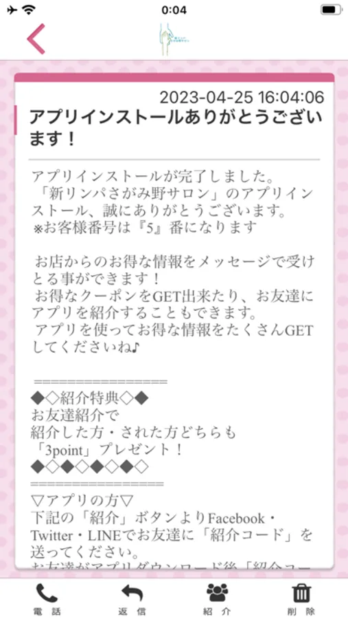 リンパさがみ野のアプリをSNSを通じてお友達に紹介する事ができます。