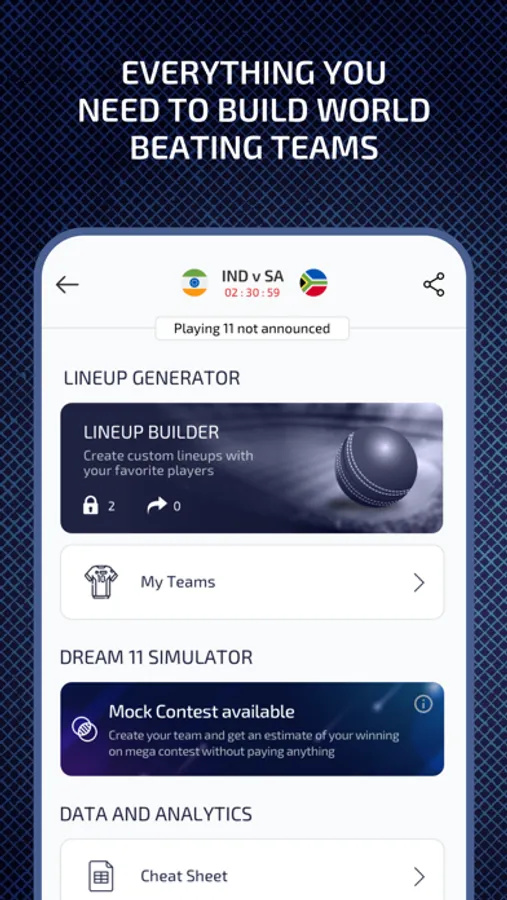 Build unique and unbeatable teams by identifying successful combinations by viewing detailed cricketing statistics and predictions on players, venues and recently completed matches.
