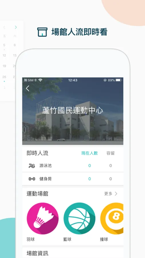 ● 即時人流:查看各場館健身房及游泳池即時人數