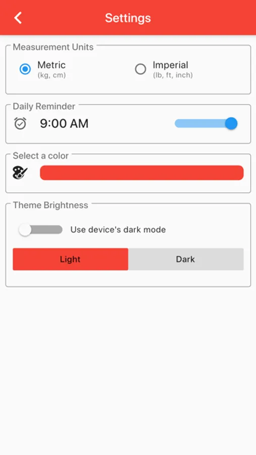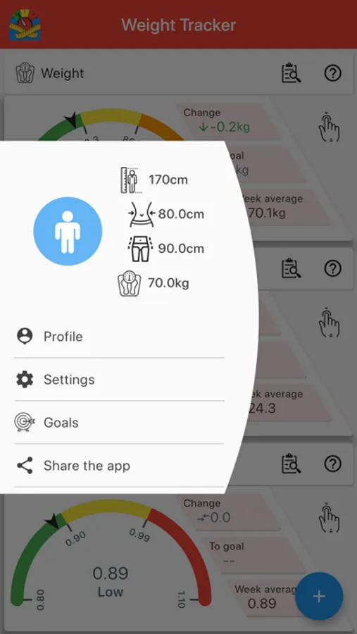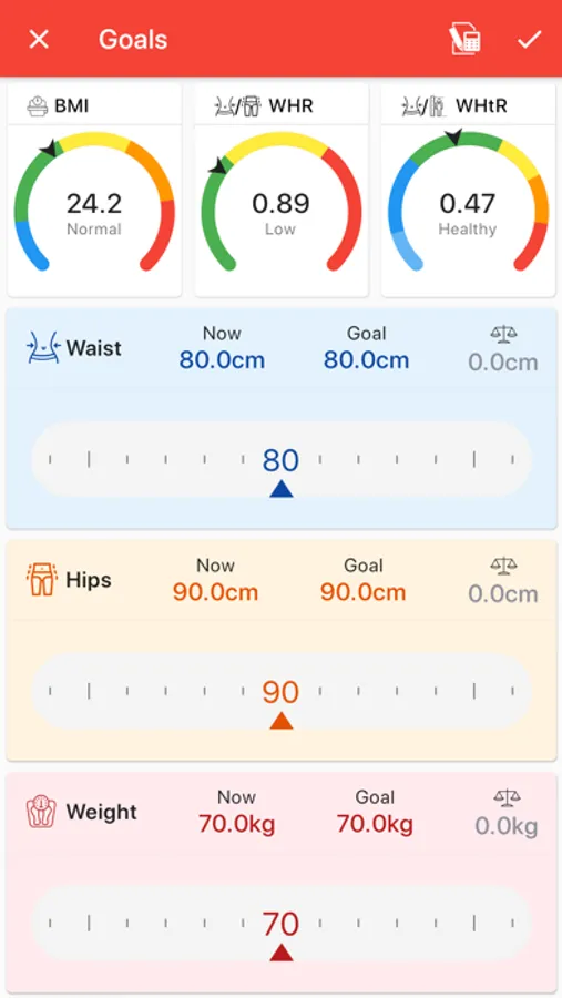 Weight Loss Tracker and BMI Calculator App allows you to set goals for each of the three tracked measures: