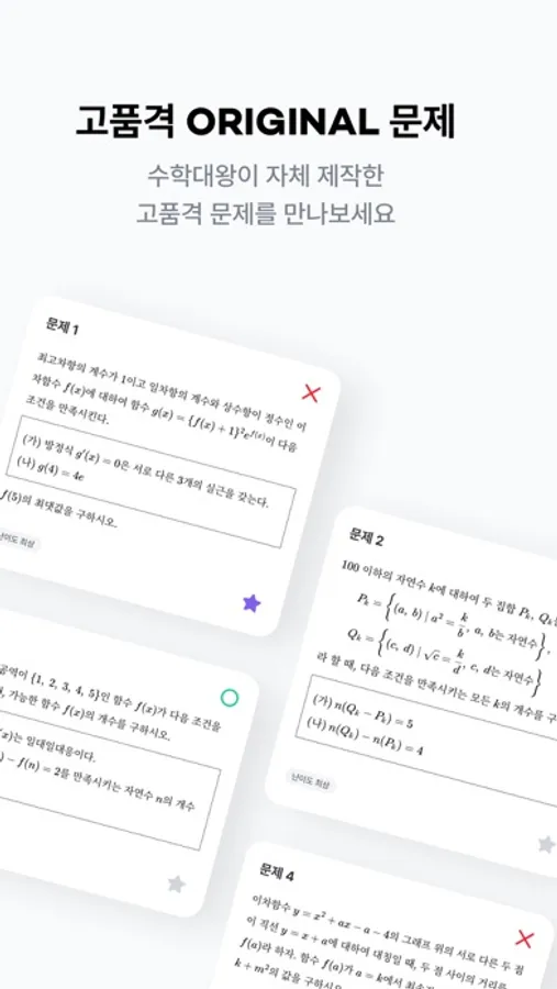 기출 문제부터 고난도 문제, 틀린 것과 유사한 문제까지! 문제집 고민하지 말고, 수학대왕에 들어오세요.