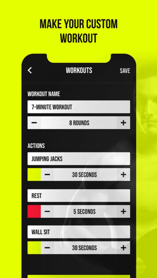 The main features of the application are adding and using workouts. Every workout is built from actions. Every action has color, name, and number of seconds for action.