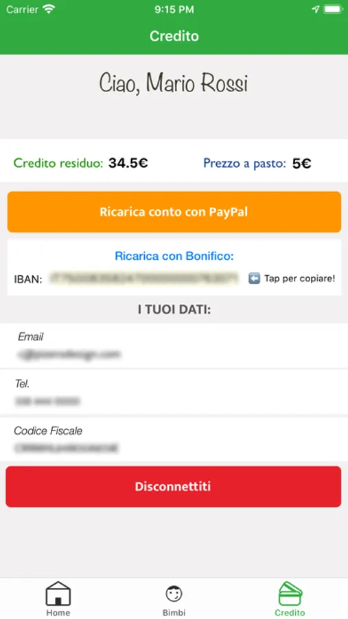 - Vedere il saldo del borsellino ed effettuare una ricarica