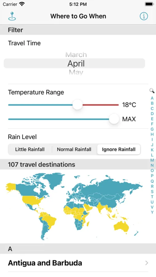 Where to Go When condenses climate and other relevant data from countries all over the world to help you choosing your next travel destination. No matter if you want to know where you can go skiing in July or what's the best time to visit South India, all information is included in this lightweight travel app.