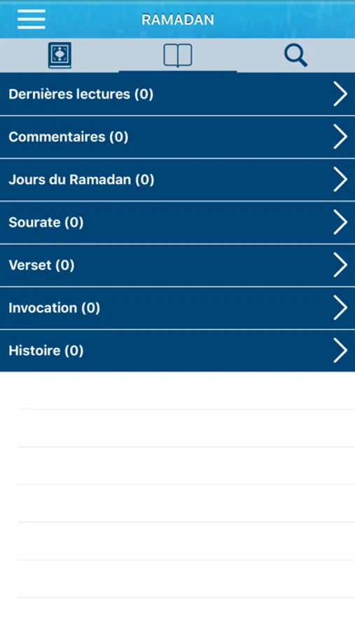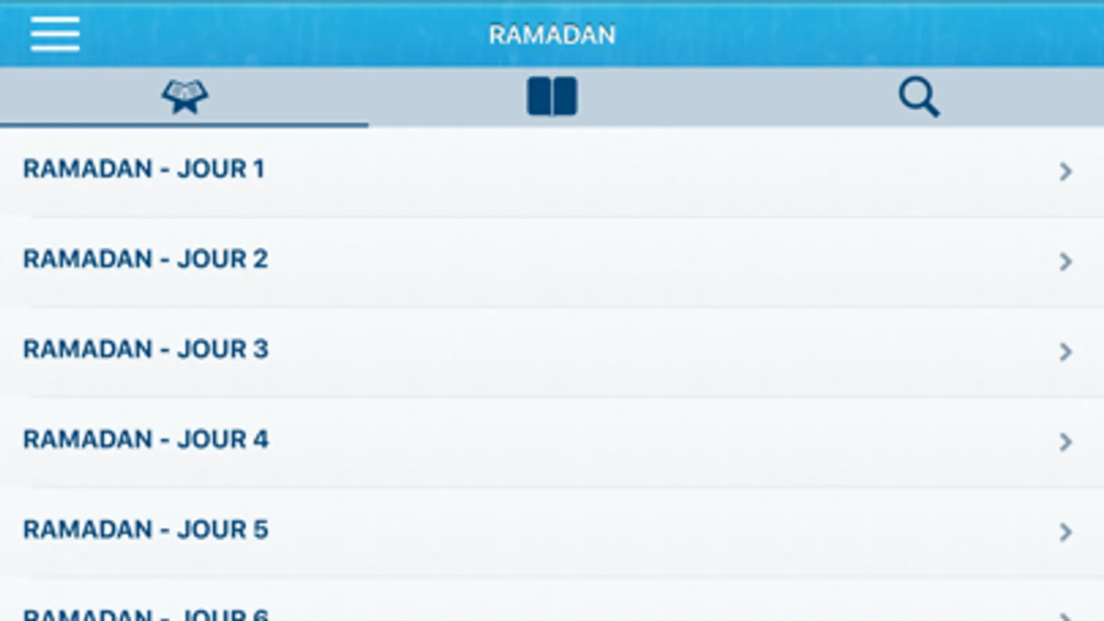 => L'application est divisée en 30 chapitres : chaque chapitre correspond à l'activité d'une journée du mois de Ramadan