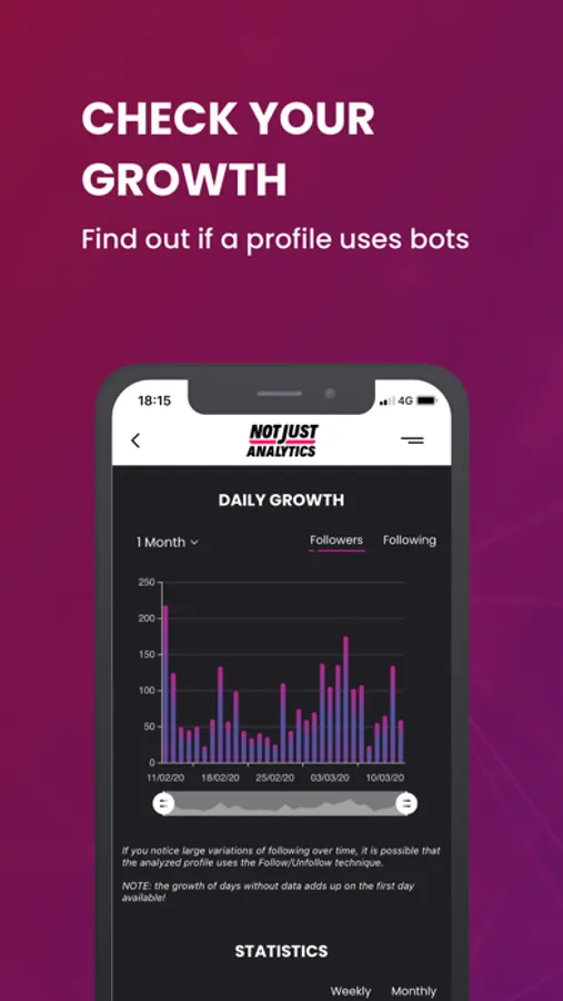 • Weekly and monthly STATISTICS of Instagram profiles.