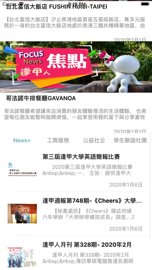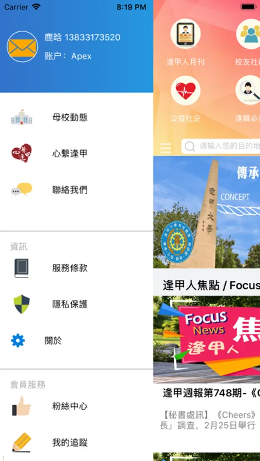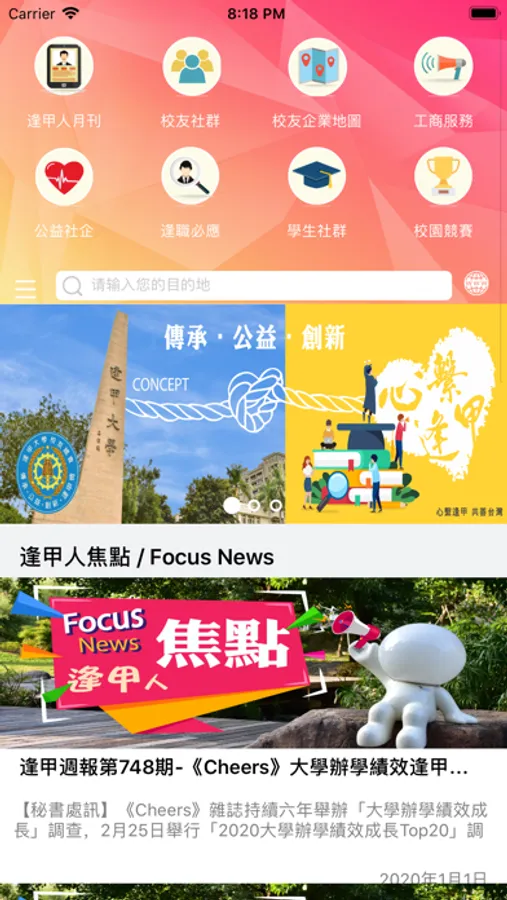 提供在校學生社團活動、各類競賽等與逢甲校友會/基金會資源媒合的交流平台,使成為在校學生與校友活動舉辦的永續智庫。