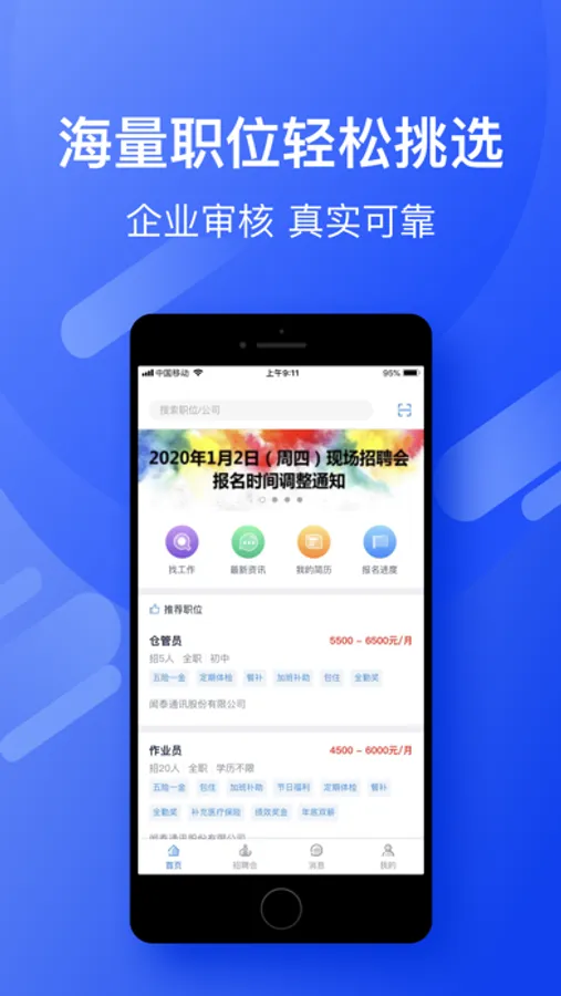 嘉兴就业APP是嘉兴市人力资源市场智能招聘信息系统的一部分,为企业用户和求职者提供智能化招聘服务。