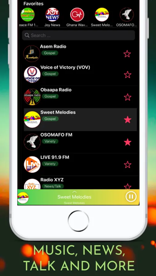 -Favorites: Radio Ghana allows you to save your favorite stations for easy access later