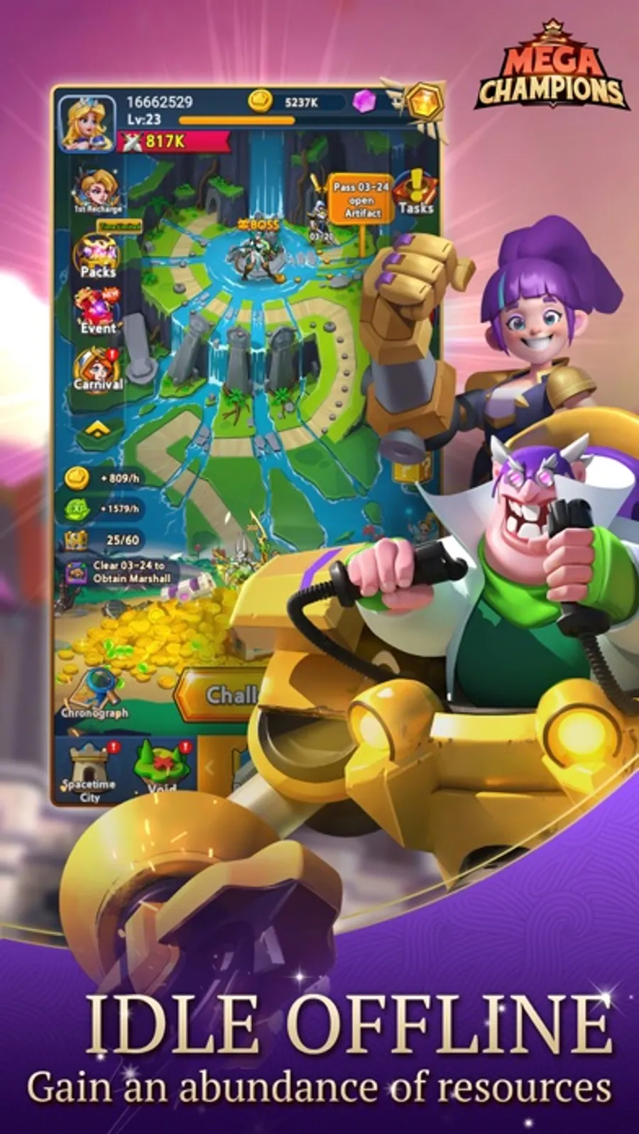 • Hang out with players from all over the globe in Mega Champions. Forge alliances or clash with other players in a myriad of PVP modes!