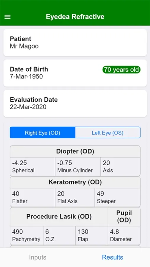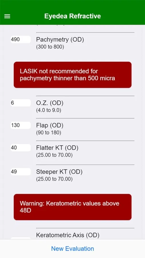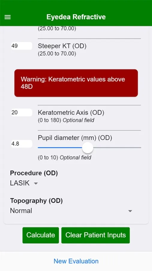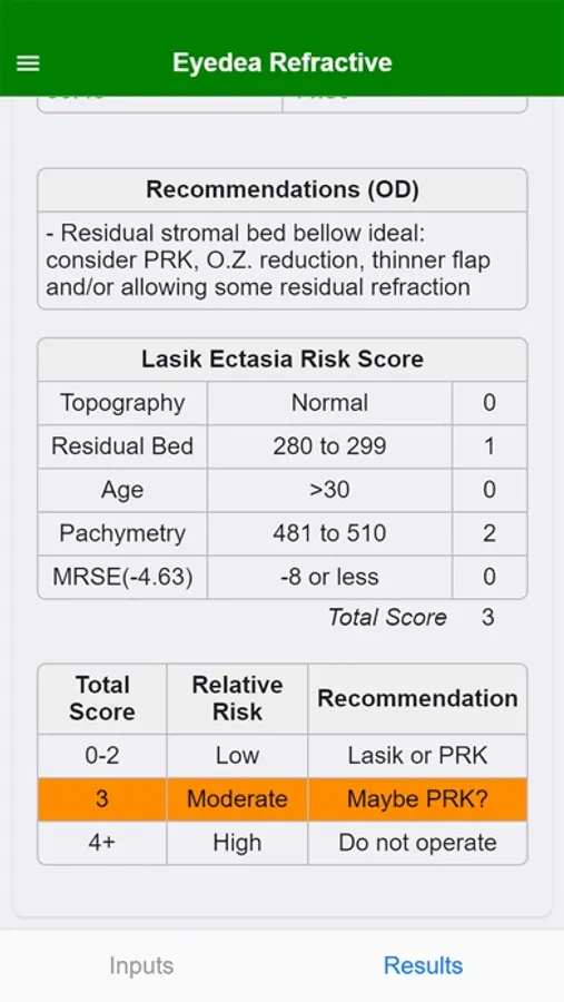 This refractive surgery calculator was created to facilitate the pre-operative evaluation for Lasik and PRK, based on widely accepted practices from current medical literature.