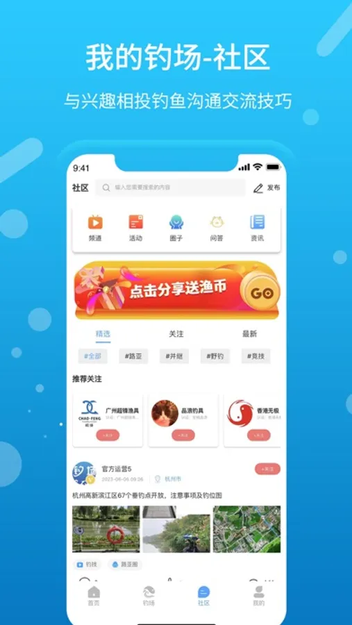 ● 社区 ①实用钓技干货,新品钓具分享,还有充满刺激的海钓模块。