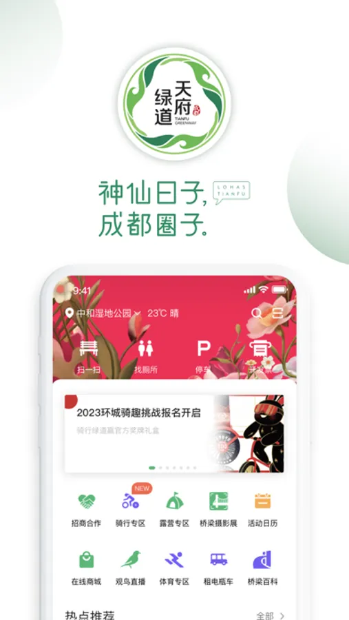 成都环城生态公园已全环贯通,天府绿道App作为成都环城生态公园官方智慧导览助手和服务平台,通过全面的信息和贴心的服务,帮助市民游客尽情体验公园城市的美好生活。
