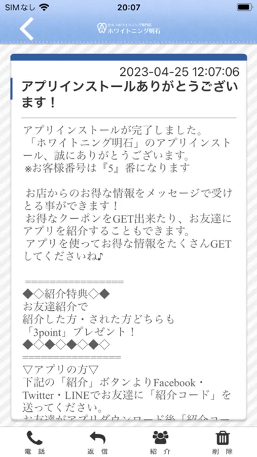 ホワイトニング明石のアプリをSNSを通じてお友達に紹介する事ができます。