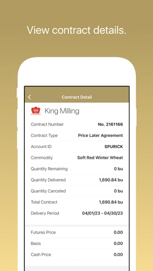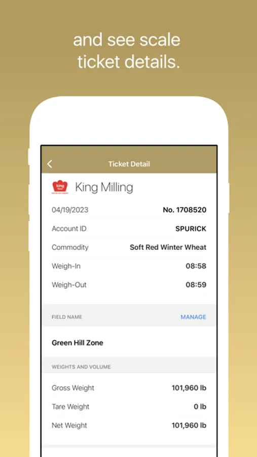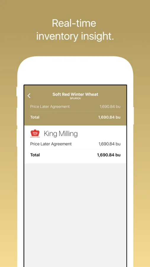 The King Milling Company app is an essential mobile solution that connects your operation to your grain facility, providing real-time, actionable information to help you manage and grow your business.