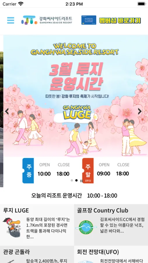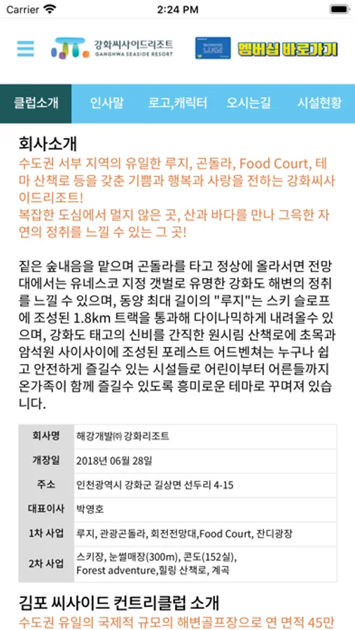 수도권 서부 지역의 유일한 루지, 곤돌라, Food Court, 테마 산책로 등을 갖춘 기쁨과 행복과 사랑을 전하는 강화 리조트!