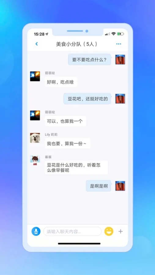 群聊:音频、视频、文字聊天,游戏、美食、情感分享、侃大山想聊就聊。
