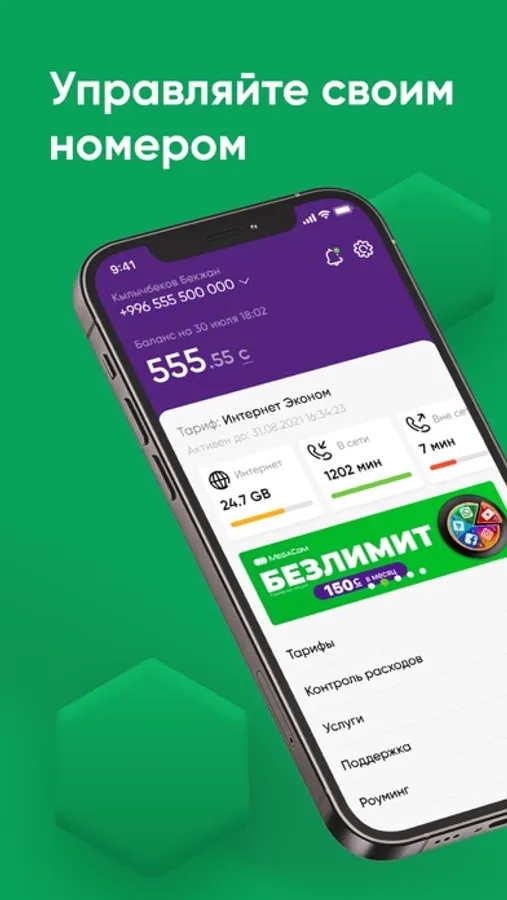 • Проверять текущий баланс, тариф и статусы активных услуг.