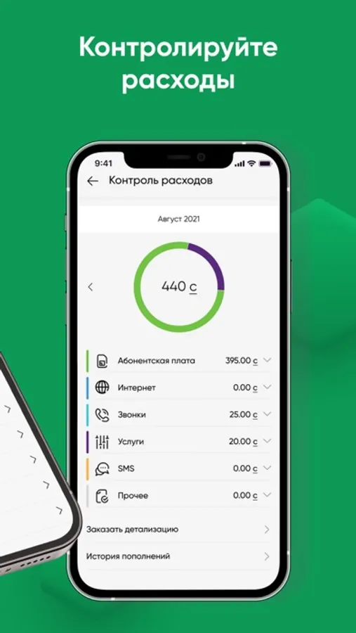 • Контролировать расходы и остатки по пакетам.
