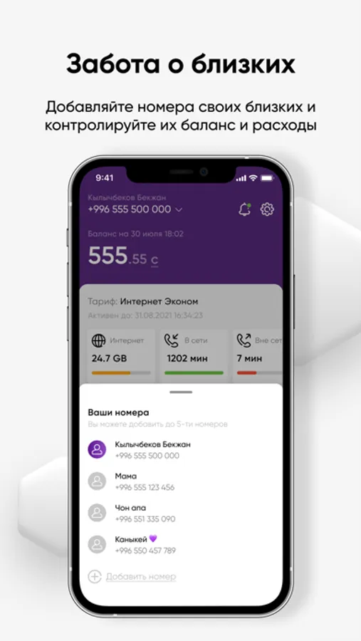 • Управлять номерами ваших близких.