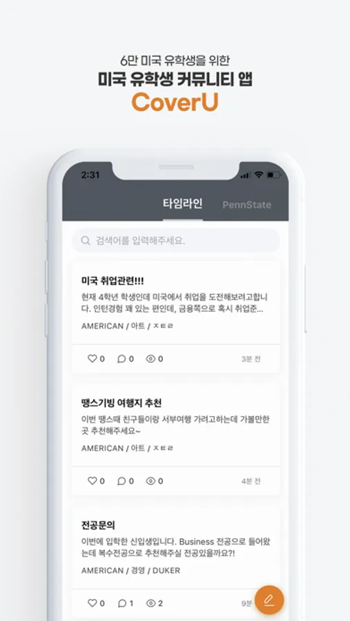 [외롭고 힘든 유학생활, 이제 CoverU에서 함께 나눠요!]