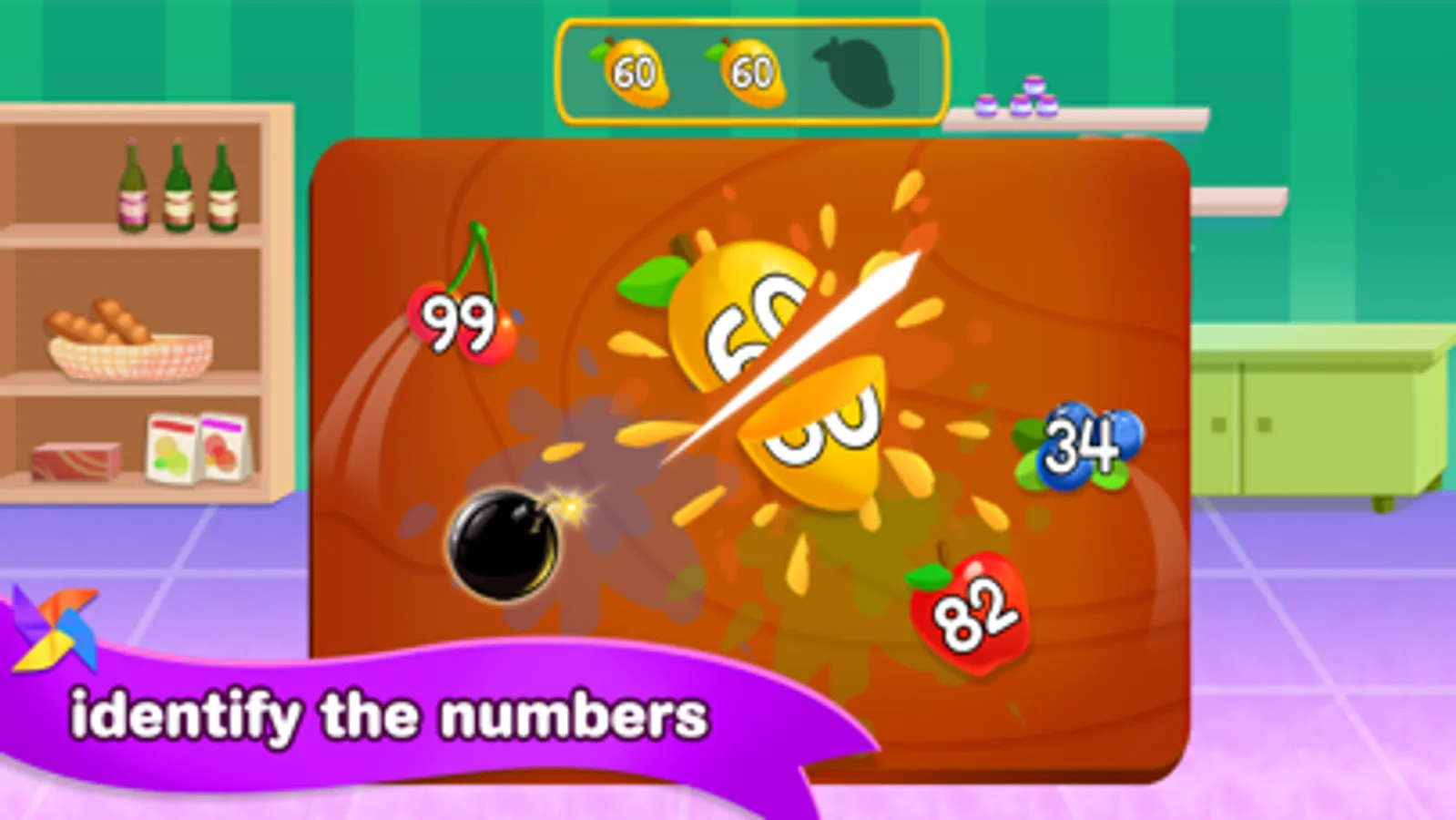 Learn the meaning of numbers, the tens and the ones. Cut the fruits to recognize the numbers.
