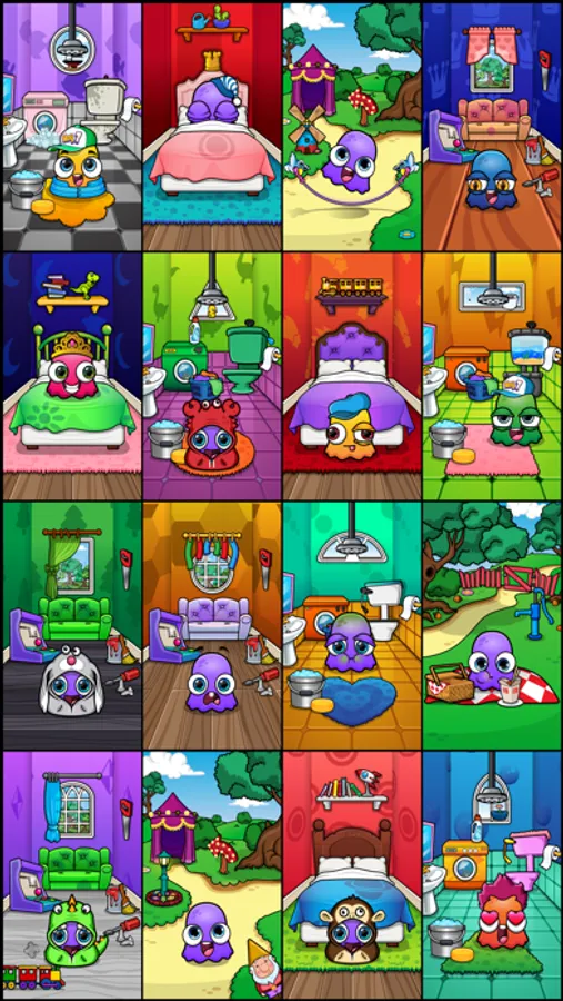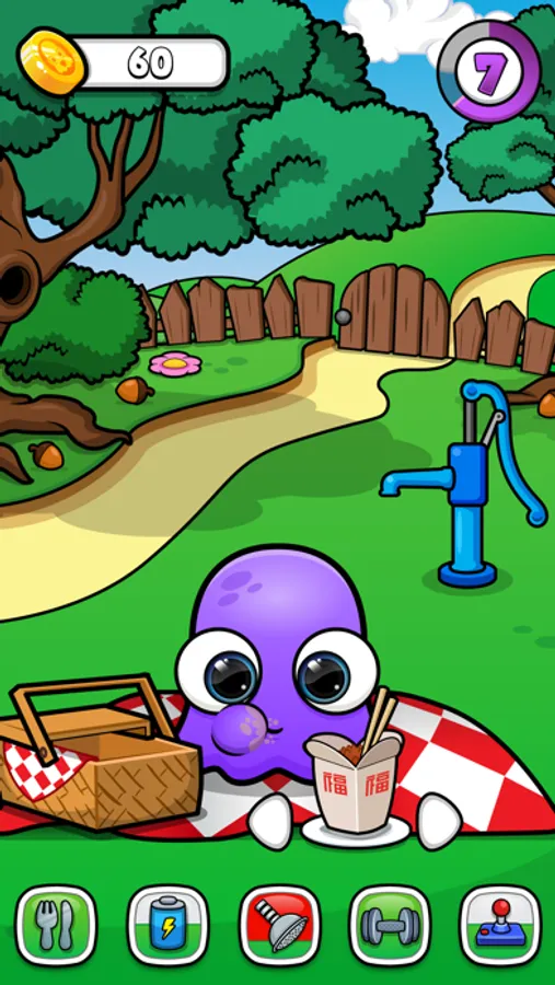 This game is all about caring for your Moy. Help Moy by brushing his teeth, showering him when he's dirty, telling him when to go to bed, give him healthy food, exercising him and playing games with him. The more you care for your Moy the more he will grow and be happy.