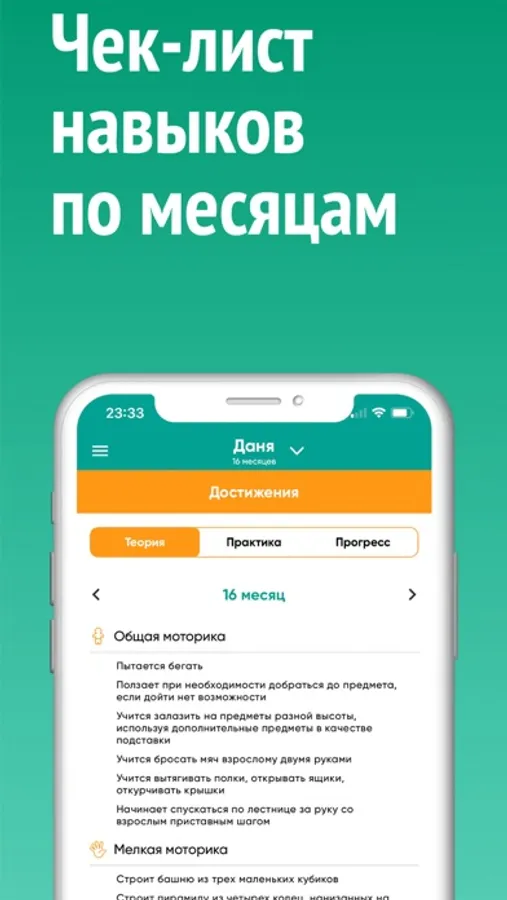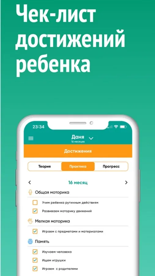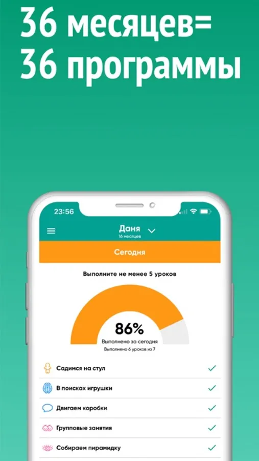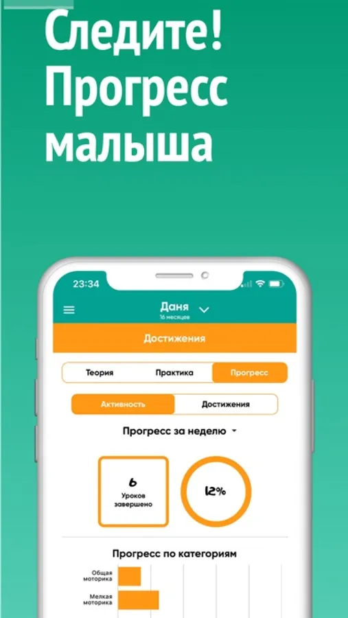 Используете приложение как дневник прогресса вашего малыша. Ежедневно выполняйте обучающие задания.