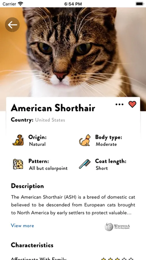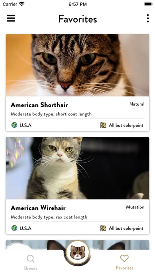 There are countless other features such as cute photos and YouTube videos of all the Cat breeds, standardized metrics for body type and breed origin, and options for feedback.