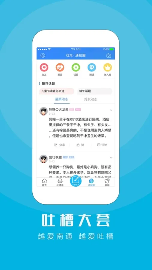 江海通报官方APP——汇集新闻爆料、民生投诉、消费维权、吐槽点赞、举报表扬等于一体的南通民生服务客户端。