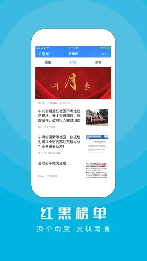 心系民生,为民解忧。江海通报官方APP,是由南通如是融媒体倾力打造的本地民生服务客户端,旗下民生投诉平台一贯倡导遵循“三不一坚持”原则:不谋求任何商业利益,不参与任何商业活动,不接受任何商业广告投放;坚持以“南通民生公益服务”为宗旨。下载江海通报APP,你投诉,我曝光!南通大小事,一起来通报。