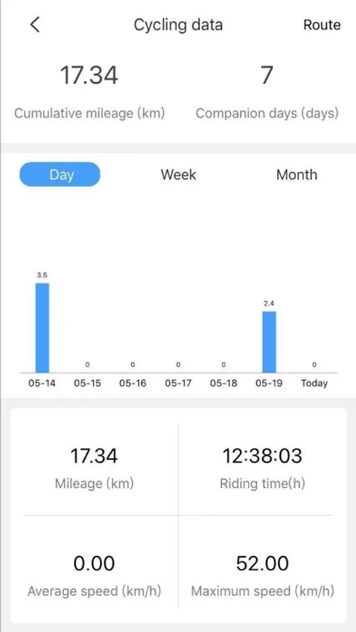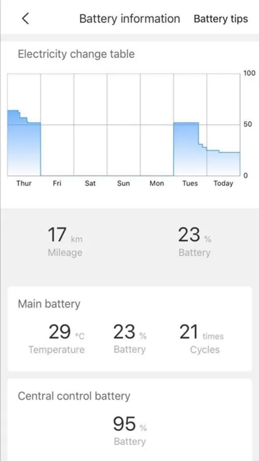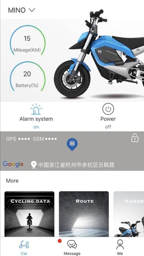 Vehicle condition: remaining power, remaining mileage, location, historical track and riding distance statistic data.