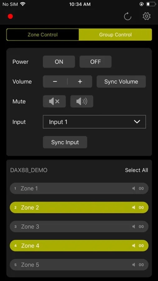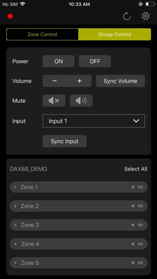 In addition to individual zone control, Matrio™ gives you the ability to group multiple zones for streamlined command. The Group Control menu allows you to adjust all possible zone settings, including power on/off and mute on/off. From the menu, you can also sync volumes and input sources across grouped zones. Choose any combination of zones from all DAX88 units on your network for custom group control.
