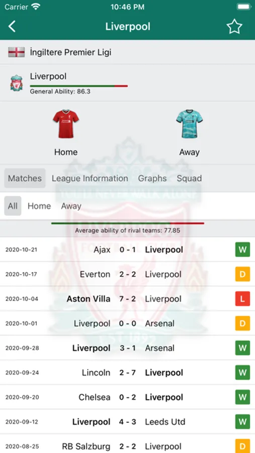 Apart from that, you can follow the live scores of the current day's matches. You can add the matches you want to your favorites list,
