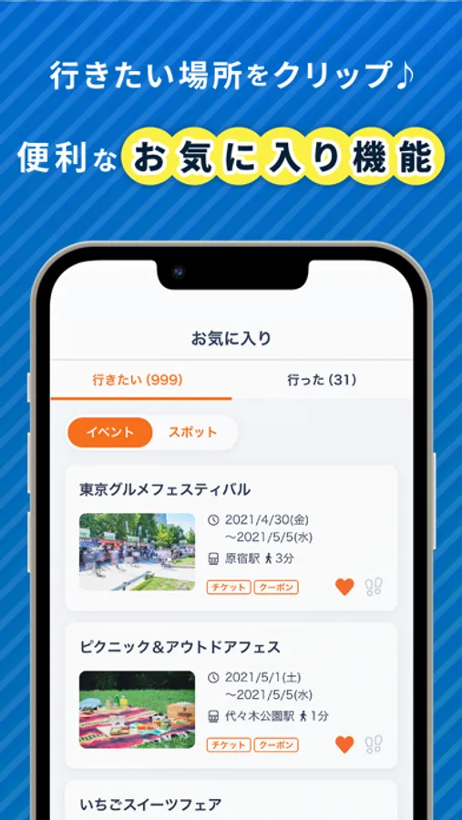 ・イベント/観光スポットのお気に入りリストが作れる
