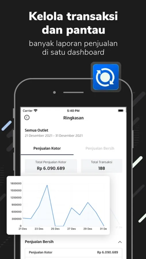 • Terima semua data penjualan dan transaksi secara real-time