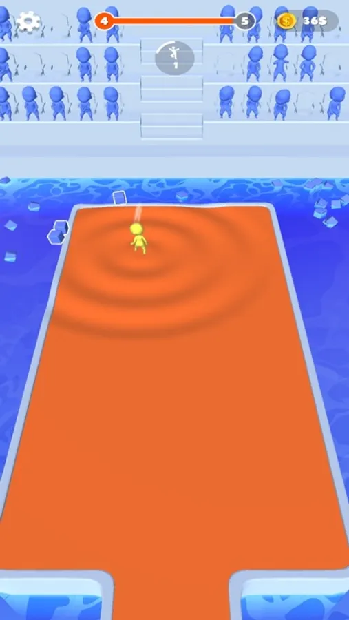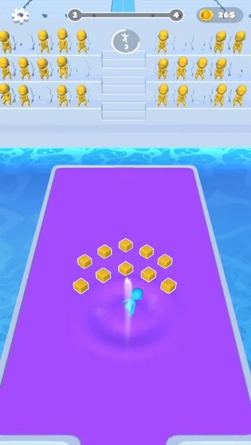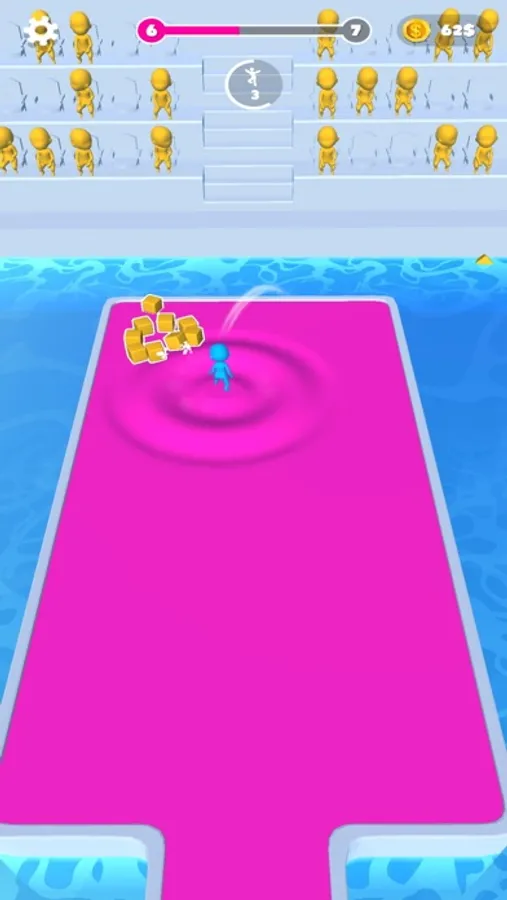 Tap to Jump and stomp the ground to create waves and throw the cubes in the water.