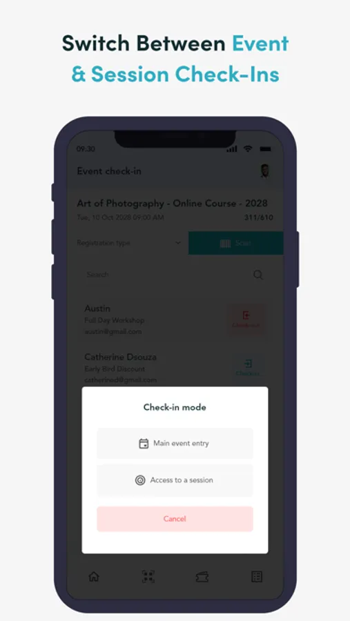 - Easily check in attendees by searching their name or browsing the list (Alternate for scanning the ticket)