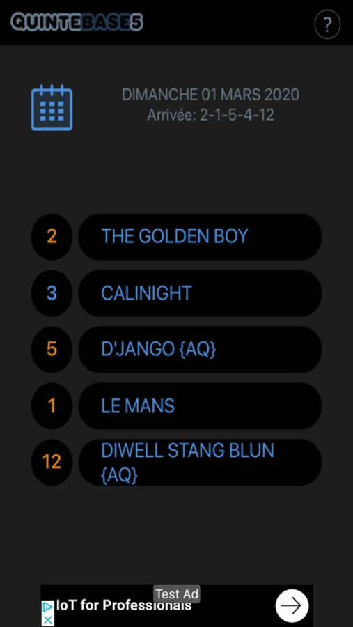 Dès que l'arrivée du Quinté est connue, "QUINTE BASE 5" l'intègre au programme ; et lorsque l'une des bases sélectionnées fait partie de l'arrivée, le numéro du cheval passe en orange et se met à clignoter.