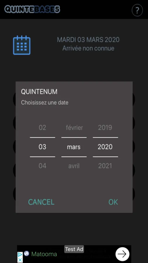 Il est possible de lire les pronostics et résultats des Quintés précédents en actionnant le Calendrier affiché à l'écran.