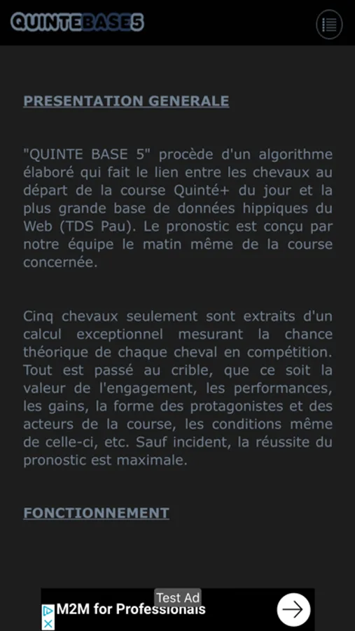 QUINTE BASE 5 affiche régulièrement des résultats probants et rémunérateurs pour celles et ceux qui utilisent le pronostic pour élaborer leurs paris. L'application est complètement gratuite. Une publicité s'affiche à l'ouverture du pronostic mais n'est